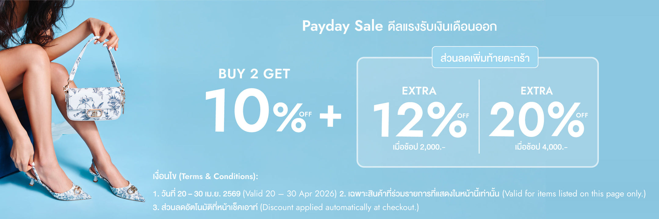 Payday🔥ดีลแรง สินค้าทั้งร้านช้อป 2 ชิ้นขึ้นไป ลดเพิ่ม 10% + ลดเพิ่ม 12% เมื่อช้อป 2,000.- (สูงสุด 400.) | ลดเพิ่ม 20% เมื่อช้อป 4,000. (สูงสุด 800.-)