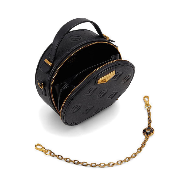 เล็กแต่ทรงพลัง กระเป๋าใบเล็กใบนี้มีรูปทรงที่โดดเด่นและสร้างความประทับใจได้อย่างแน่นอน มาพร้อมรายละเอียดลายนูนและวัสดุตกแต่งสีทอง เสริมให้ลุคของคุณดูสมบูรณ์แบบยิ่งขึ้น